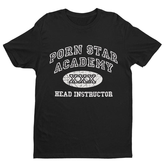 Funny Rude Joke T Shirt PORN STAR ACADEMY HEAD INSTRUCTOR Novelty Vintage Look
