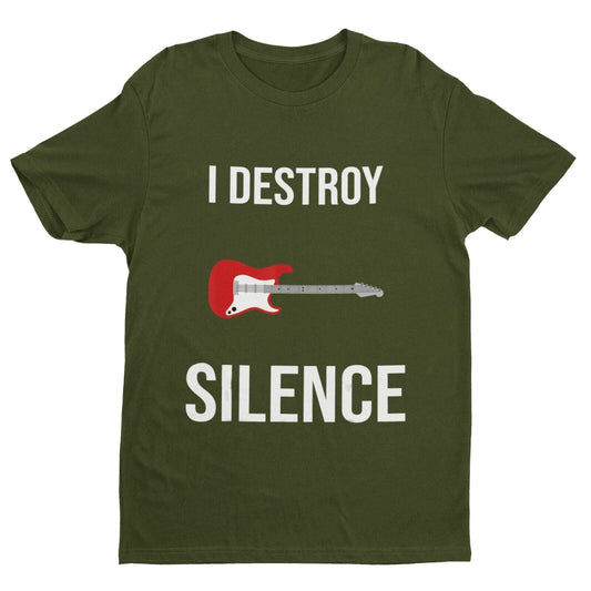 I DESTROY SILENCE Funny Guitar T Shirt Guitarist Novelty Top Gift Idea Musician