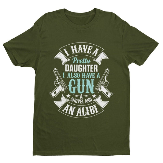 I Have A Pretty Daughter I Also Have A Gun Shovel and An Alibi Funny T Shirt Dad