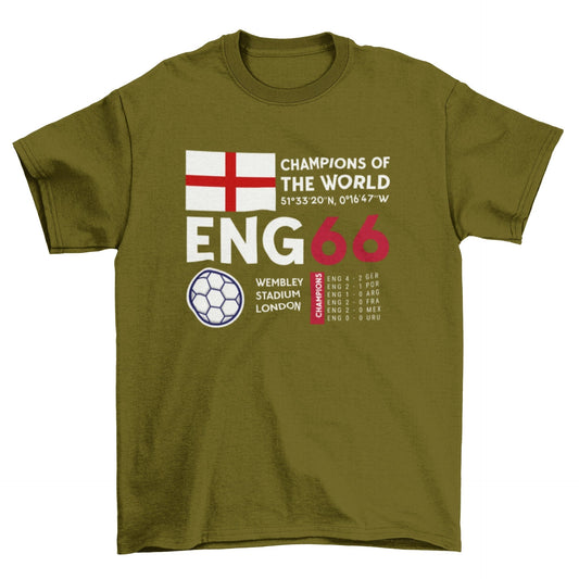 Retro Football T Shirt England 1966 Champions Of The World Cup Winners Soccer