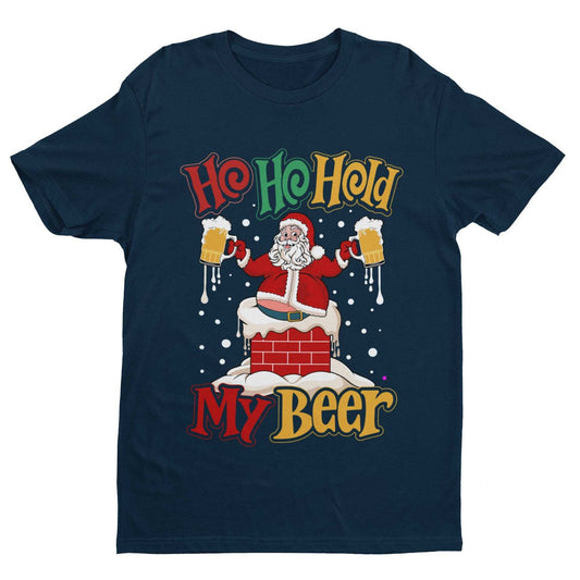Funny Christmas Santa T Shirt Ho Ho Hold My Beer Gift Idea Xmas Drinking Joke