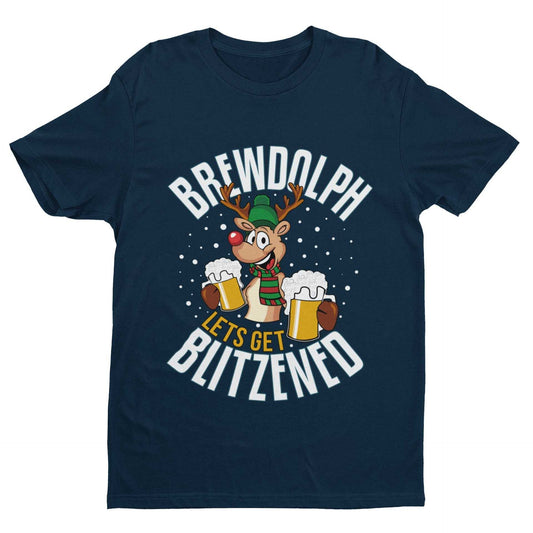 Funny Christmas T Shirt Brewdolph Lets Get Blitzened Rudolph Reindeer Drinking