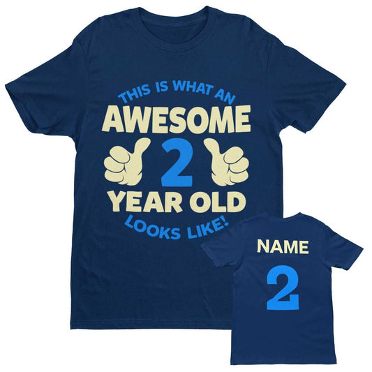 PERSONALISED Boys 2nd Birthday T Shirt Awesome 2 Year Old NAME AND AGE ON BACK