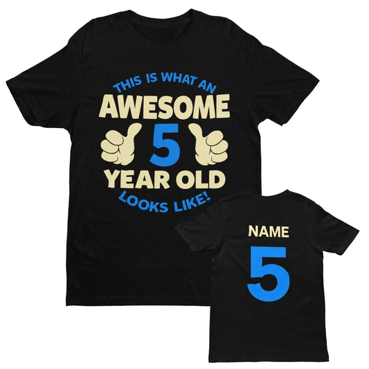 PERSONALISED Boys 5th Birthday T Shirt Awesome 5 Year Old NAME AND AGE ON BACK