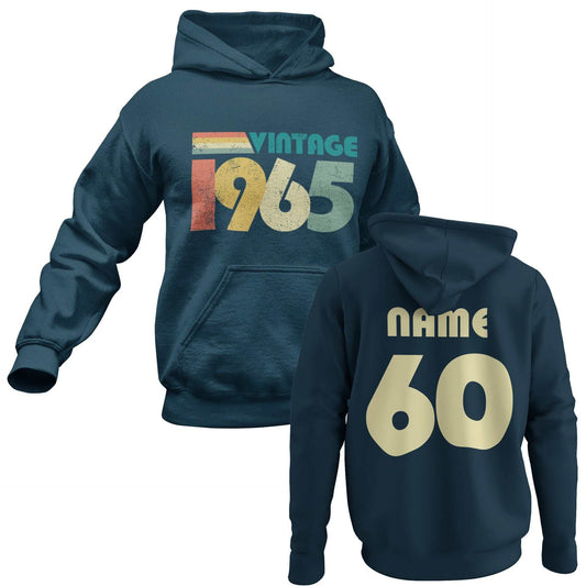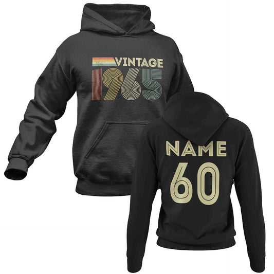 Personalised 60th Birthday in 2025 Hoodie Vintage 1965 with Name and Age On Back