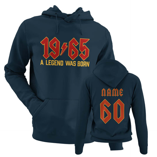 Personalised 1965 A Legend Was Born 60th Birthday in 2025 Hoodie Name on Back