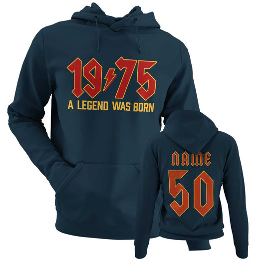 Personalised 1975 A Legend Was Born 50th Birthday in 2025 Hoodie Name on Back