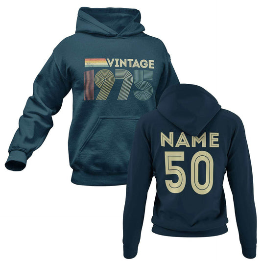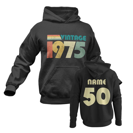 Personalised 50th Birthday in 2025 Hoodie Vintage 1975 with Name and Age On Back