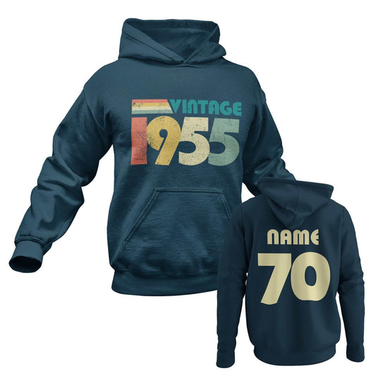 Personalised 70th Birthday in 2025 Hoodie Vintage 1955 with Name and Age On Back