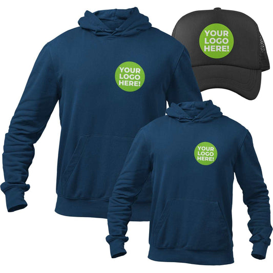 Personalised Workwear Bundle 2 Hoodies and One Baseball Cap Printed with your Logo Text or Image