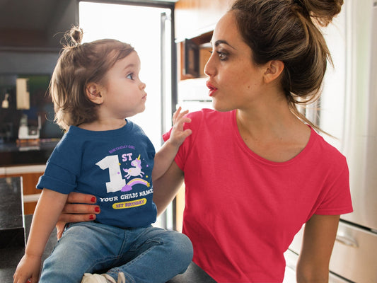 Baby Girls Personalised 1st Birthday Cute Unicorn T Shirt with Name Printed