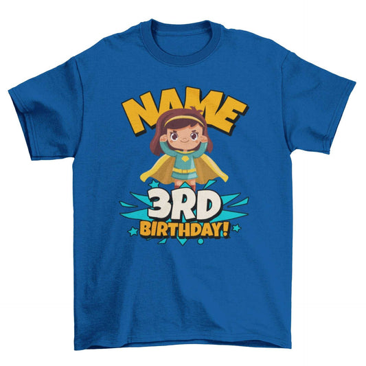 GIRLS PERSONALISED 3rd Birthday Superhero T Shirt with Your Childs Name Added