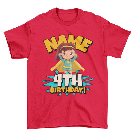 GIRLS PERSONALISED 4th Birthday Superhero T Shirt with Childs name added Gift