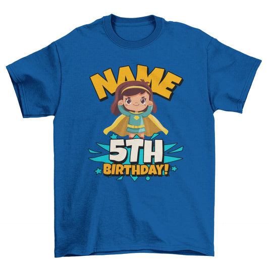 GIRLS PERSONALISED 5th Birthday Superhero T Shirt With Your Childs Name Printed