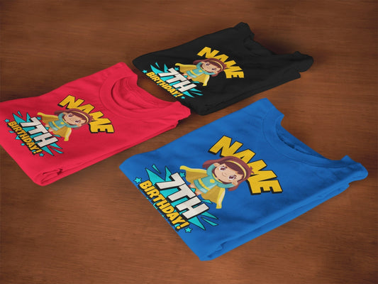 GIRLS PERSONALISED 7th Birthday Superhero T Shirt With Your Childs Name Printed