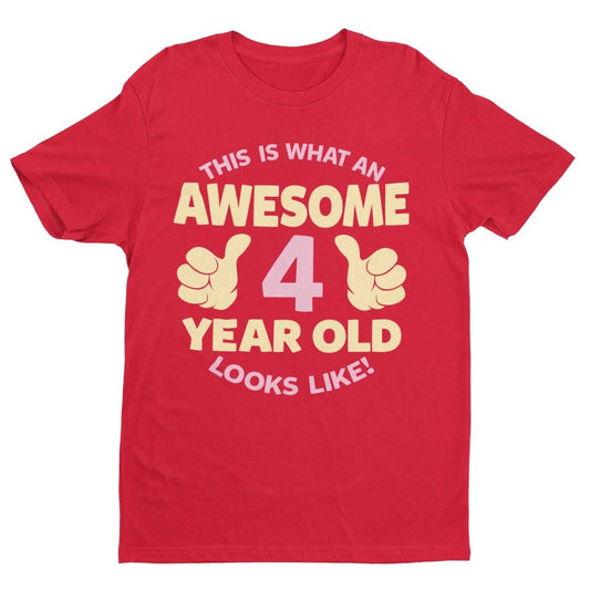 Girls 4th Birthday T Shirt This Is What An Awesome 4 Year Old Looks Like Gift