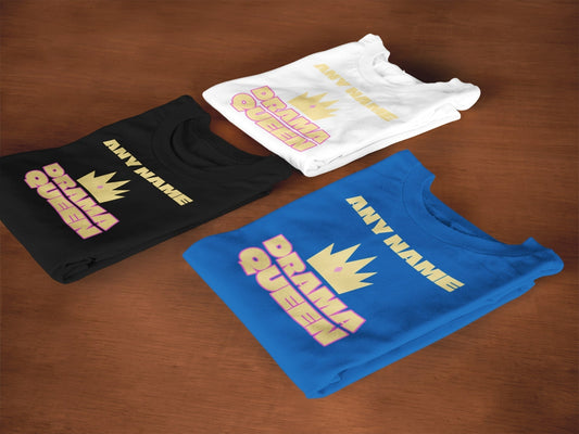 Girls Cute Personalised Gift Idea Drama Queen Slogan T-Shirt Funny With Any Name