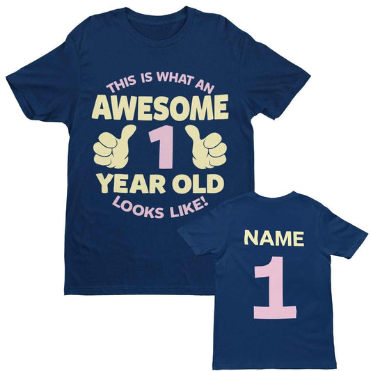PERSONALISED Girls 1st Birthday T Shirt Awesome 1 Year Old NAME AND AGE ON BACK