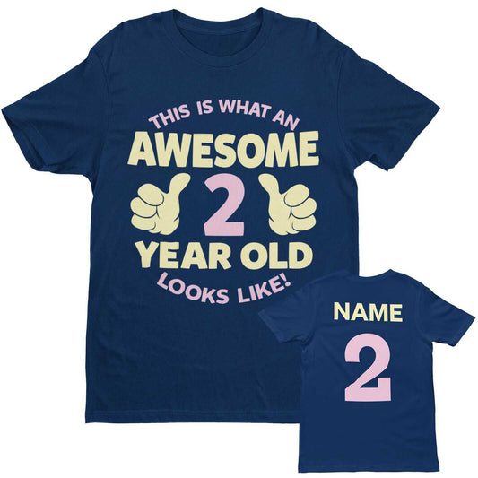 PERSONALISED Girls 2nd Birthday T Shirt Awesome 2 Year Old NAME AND AGE ON BACK