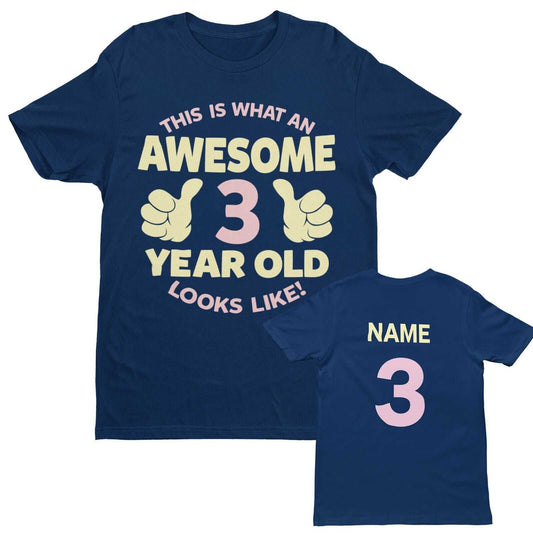PERSONALISED Girls 3rd Birthday T Shirt Awesome 3 Year Old NAME AND AGE ON BACK