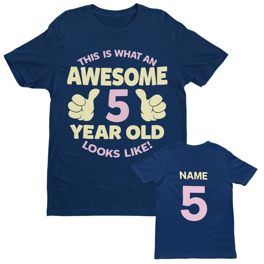 PERSONALISED Girls 5th Birthday T Shirt Awesome 5 Year Old Name & Age On Back
