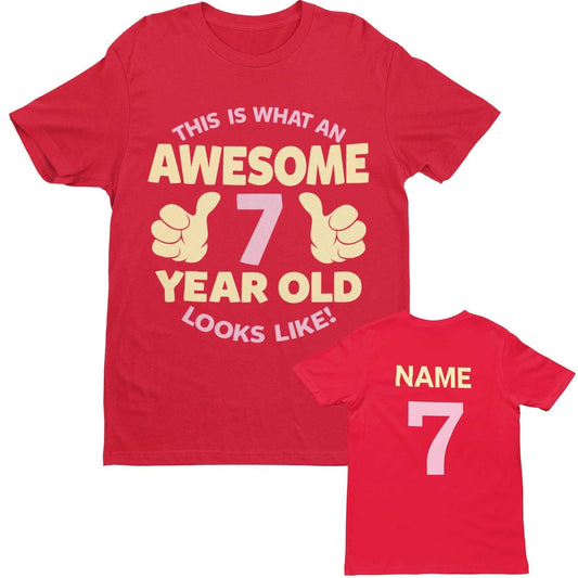 PERSONALISED Girls 7th Birthday T Shirt Awesome 7 Year Old Name & Age On Back