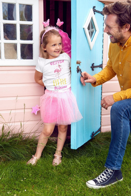 Personalised Girls Little Princess T-shirt flamingo ballerina any name added