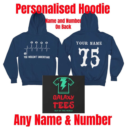 PERSONALISED BIKER HOODIE Heartbeat Gearshift Name and Number on Back Motorcycle