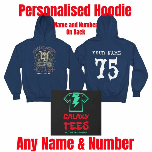 PERSONALISED BIKER HOODIE ROUTE 66 Road Rash Name And Number on Back Gift Idea