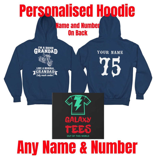 PERSONALISED Funny I'm A Biker Grandad Hoodie Name and Number on Back motorcycle