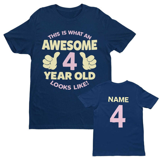 PERSONALISED Girls 4th Birthday T Shirt Awesome 4 Year Old NAME AND AGE ON BACK