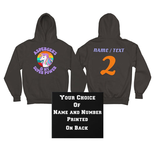 Personalised ASPERGER'S IS MY SUPERPOWER HOODIE Autism NAME and NUMBER on back