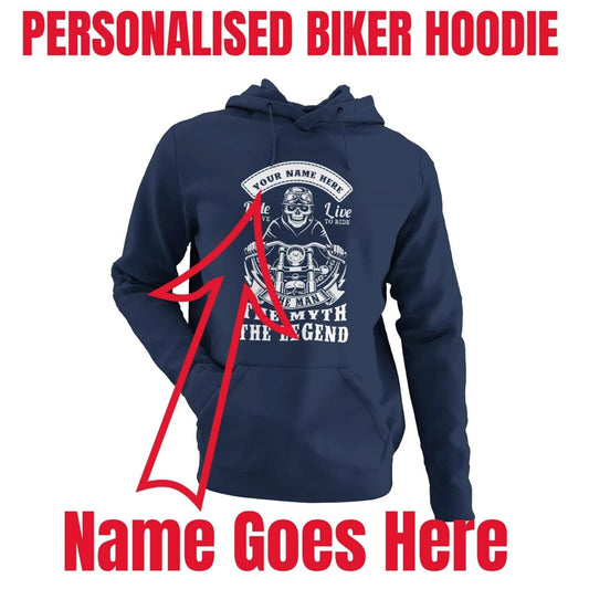 Personalised Biker Hoodie ANY NAME The Man The Myth The Legend Great Gift Idea