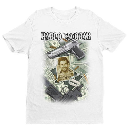 Pablo Escobar T Shirt Retro Guns Crime Smuggling Gangster Columbia Dollars Lines