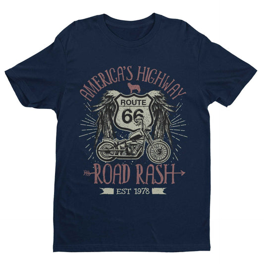 Route 66 America's Highway Road Rash Biker T Shirt Motorcycle Classic Design