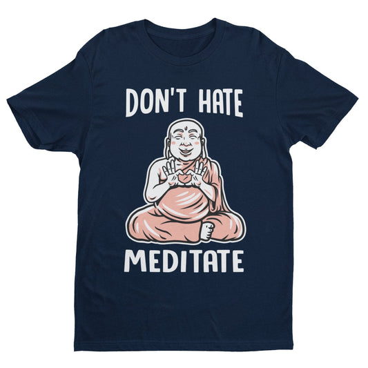 Funny Don't Hate Meditate T Shirt Buddah Yoga Mindfulness Wellness Meditation