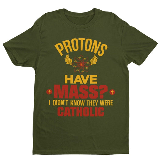 Funny Physics Pun T Shirt Protons Have Mass ? I Didn't Know They Were Catholic