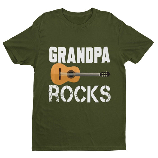 Grandpa Rocks Funny Guitar T Shirt Accoustic Novelty Grandfather Gift Idea Music