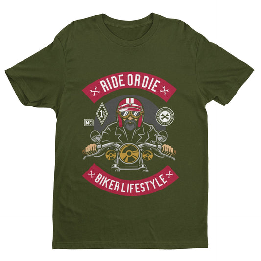 Biker Ride Or Die Motorcycle Lifestyle Club T Shirt 1% Bobber Helmet Old Guy