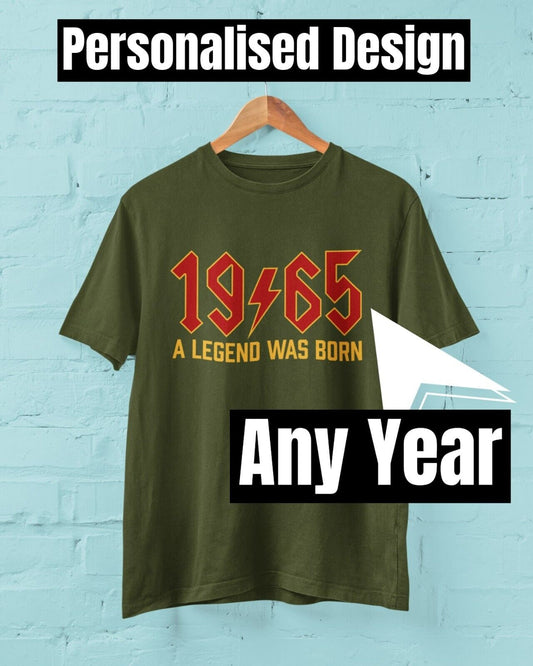 Funny ANY YEAR A Legend Was Born Rock Font T Shirt Personalised For Any Birthday