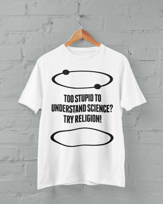 Funny Atheist T Shirt Too Stupid To Understand Science? Try Religion Free Think