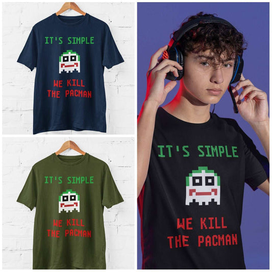 Funny T Shirt It's Simple We Kill The Pacman Retro Gaming Joker Parody 8 Bit