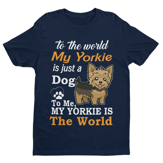 MY YORKIE IS MY WORLD Dog Lovers T Shirt Yorkshire Terrier Gift Idea Funny Cute