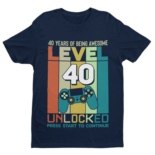 Funny 40th Birthday T Shirt Level 40 Unlocked Gaming Theme Gamer Gift Idea Forty