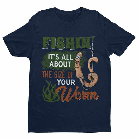 Funny Rude Fishing T Shirt Fishin' It's All About The Size Of Your Worm