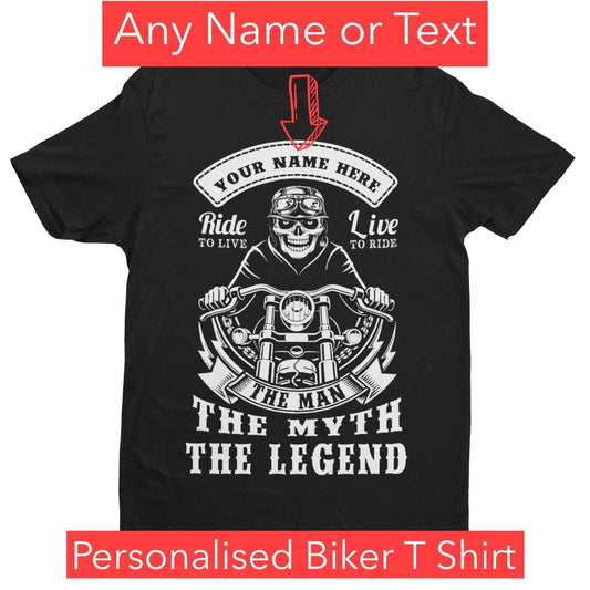 PERSONALISED BIKER T Shirt YOUR NAME TEXT The Man The Myth The Legend Gift Idea