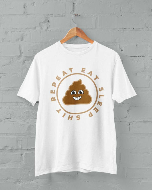 Funny Sarcastic Rude T Shirt Eat Sleep Sh*t Repeat Banter Smiling Poo Joby FAF