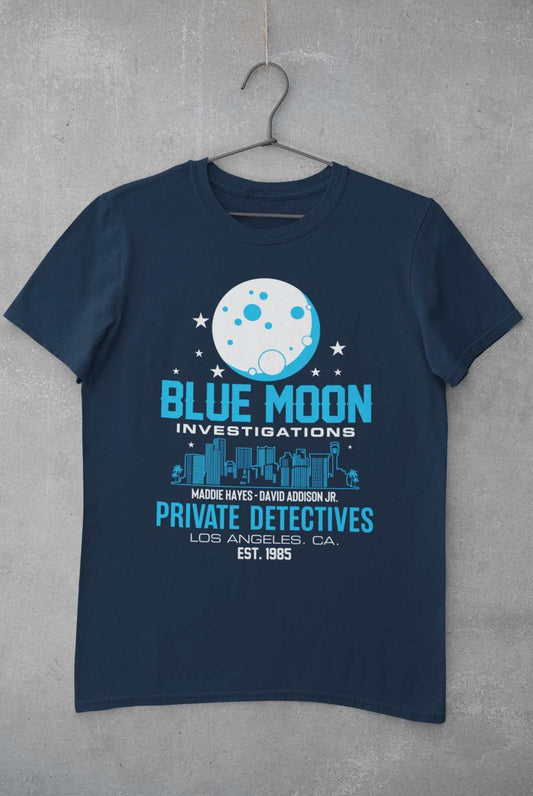 Retro TV T Shirt Blue Moon Investigations Moonlighting 80s Banter GIft Idea 1985