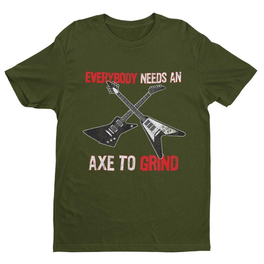 Funny Guitar T Shirt EVERYBODY NEED AN AXE TO GRIND Metal Theme Electric Gift
