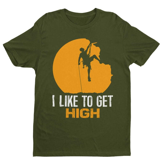 Funny ROCK CLIMBING T Shirt I LIKE TO GET HIGH Gift Idea Climber Free Climb